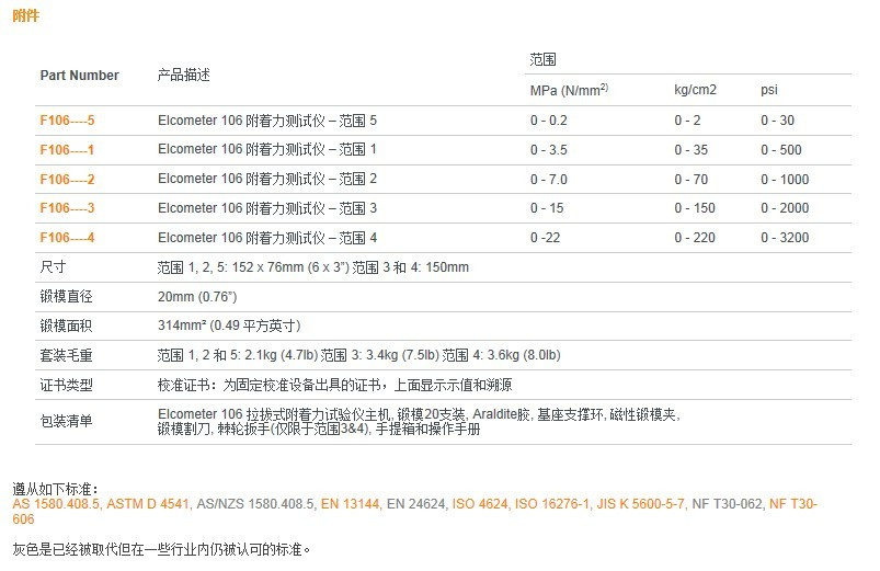 Elcometer 106附着力测试仪操作简单携带方便,测量范围广泛。应用范围包括油漆或桥面喷浆,钢铁、铝、混凝土上的涂层,等等。
